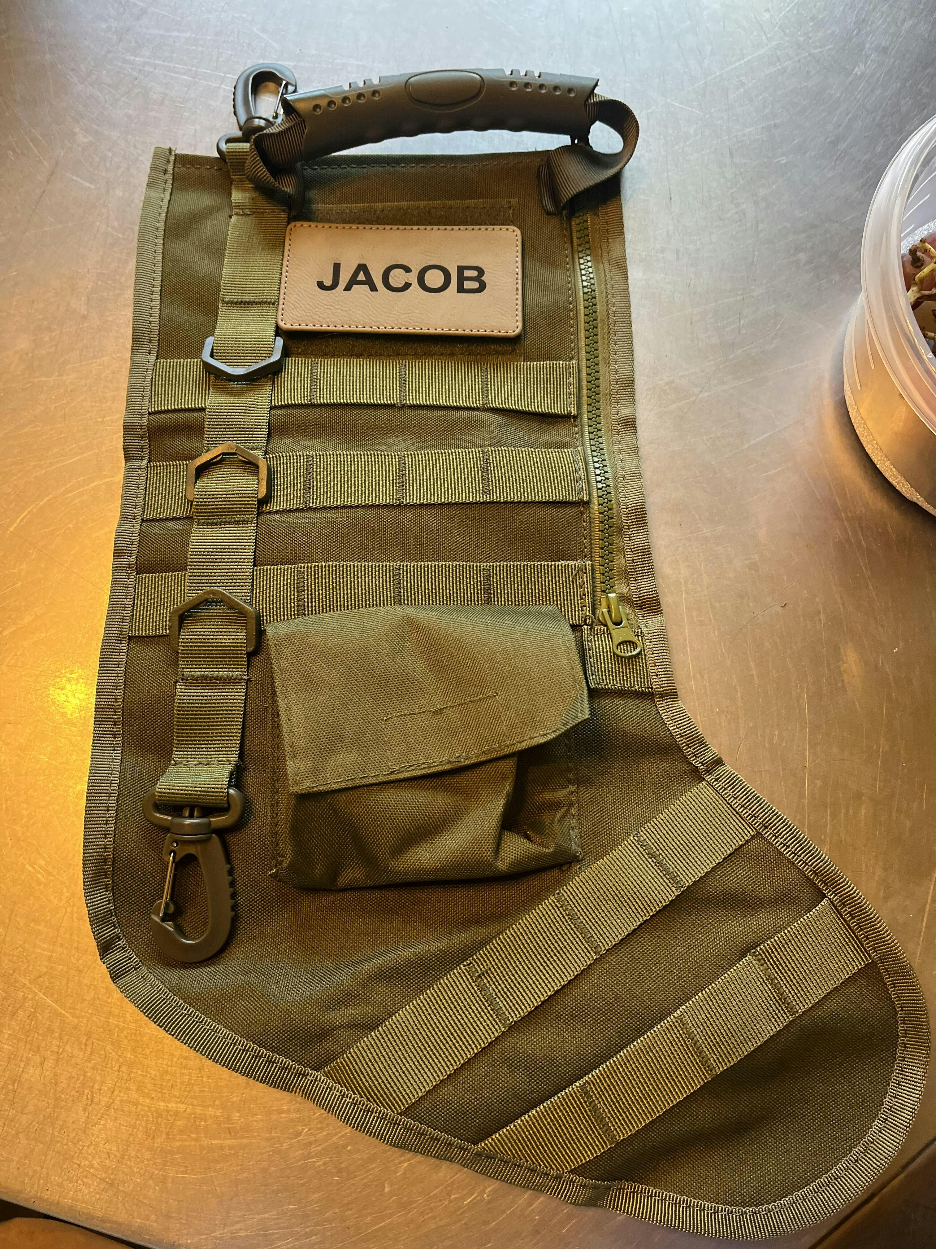 This year burn those pansy tube sock stockings grandma gave him and get him a stocking as rugged as him.  Made out of military grade nylon, this tactical MOLLE stocking is sure to please.  Doubles as a tactical magazine drop pouch, each stocking is ready to be customized with any of our certified manly stocking stuffers (sold separately).